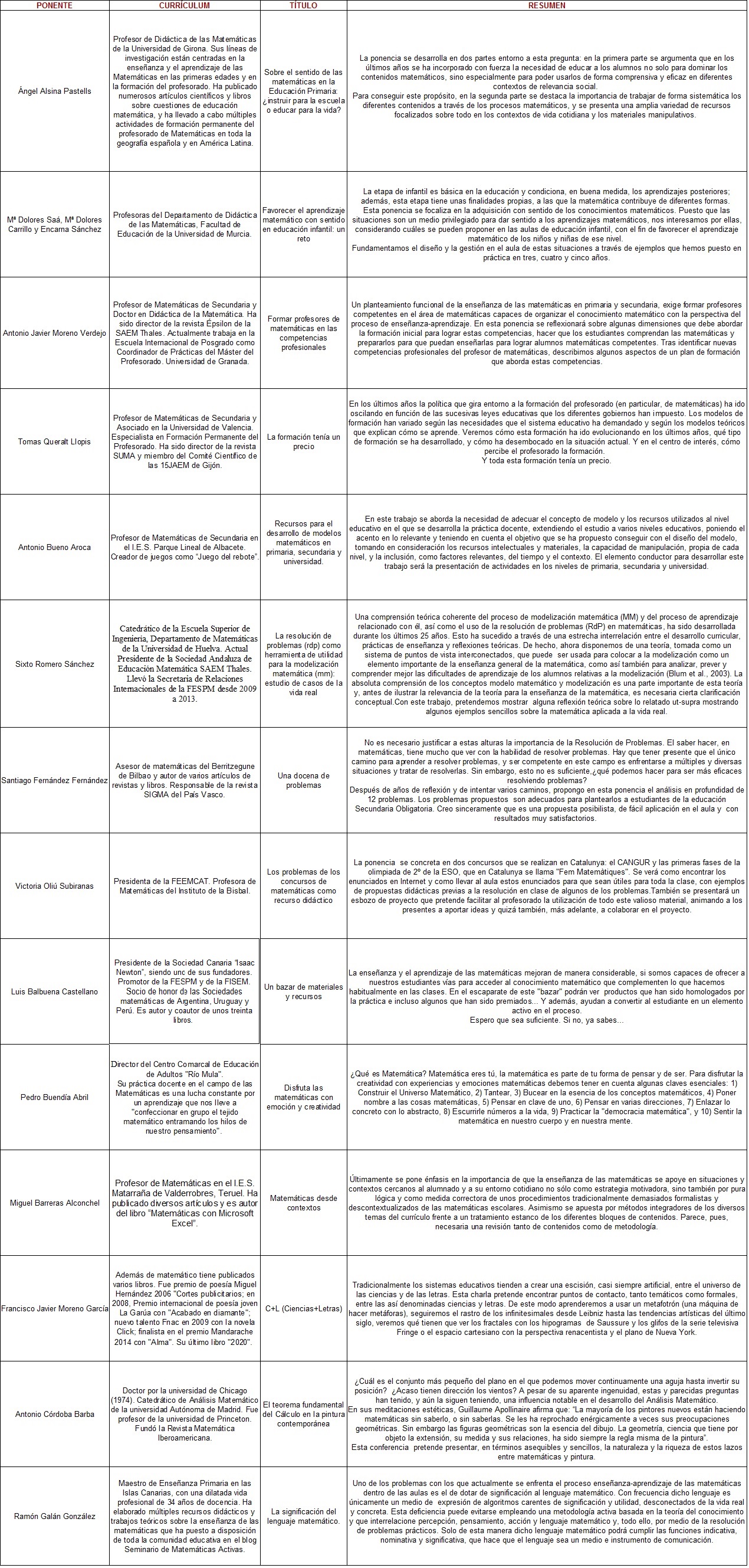 Horarios de las ponencias