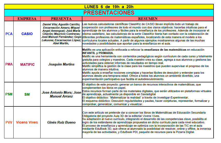 En las 17JAEM contaremos con las siguientes presentaciones